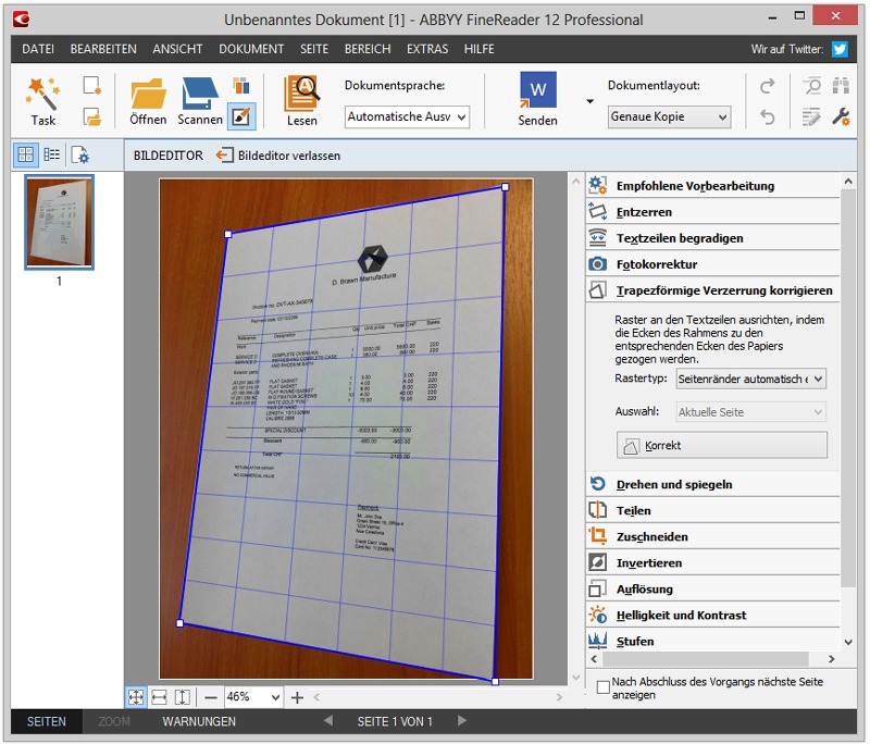 - Ausgereifte Tools für die Bildvorverarbeitung korrigieren digitale Fotos von Dokumenten automatisch und lassen sie wie Scans aussehen, wodurch auch die Qualität der Erkennungsergebnisse gesteigert wird.