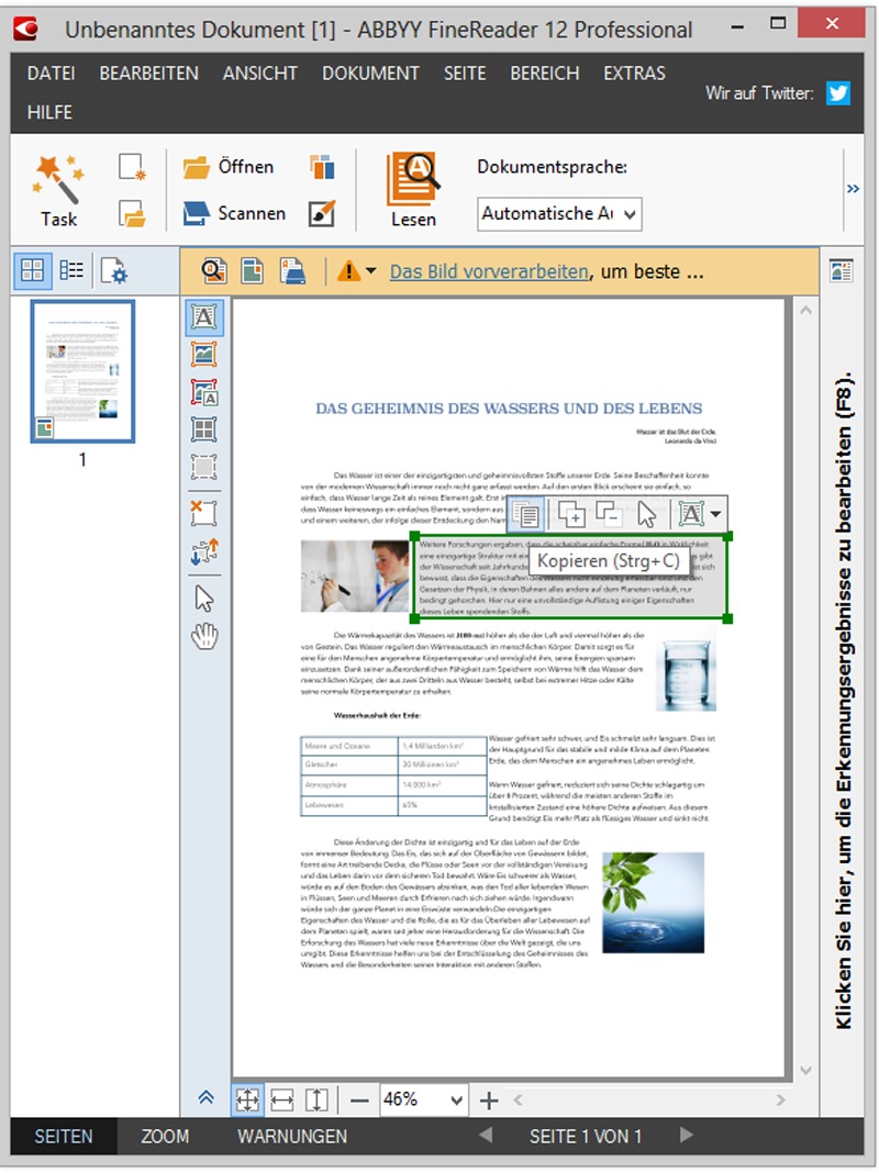 - Wählen Sie einfach Textbereiche, Abbildungen oder Tabellen aus, die Sie erkennen und in die Zwischenablage kopieren möchten.