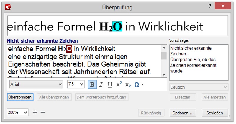 - Prüfen und korrigieren Sie die Erkennungsergebnisse mit dem verbesserten Verifizierungstool sowie im integrierten Texteditor direkt in FineReader, bevor Sie sie im bevorzugten Format speichern.