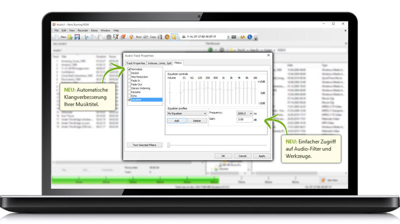 - Super einfaches Erstellen von Audio CDs aus Musikvideos mit automatischer Soundverbesserung